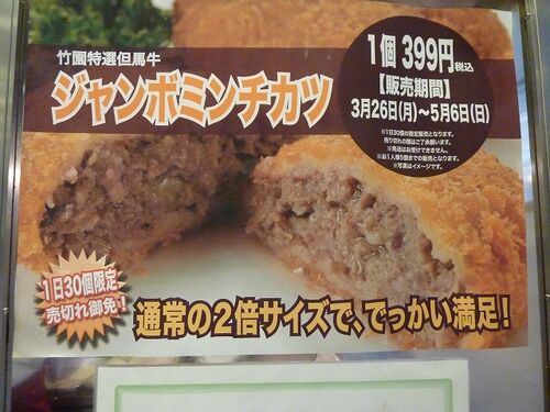 JR芦屋の北にある有名なお肉屋さん「竹園」。そこのコロッケもまた有名です。 コロッケもおいしいのですが、僕の好物はミンチカツ。 ところが、10年以上前から少しずつサイズが小さくなり、今では昔の2/3くらいに縮んでみすぼらしいお姿になってしまいました…
