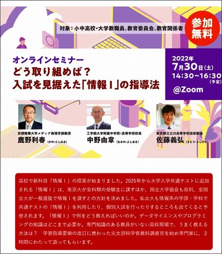 いよいよ、共通テストの教科に「情報Ⅰ」が入ることが確実となりました。国公立大学の多くは必須教科として考えているようです。 共通テスト科目としての「情報Ⅰ」は、たった2単位教科で100点配点という、コスパの良さ(?)があり、しっかり対策を立てたいと…